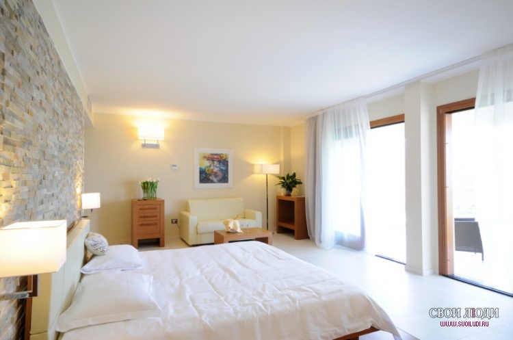 Luxury Suite, Junior Suite и Luxury Room: просторные номера с мебелью из натурального дерева, состоящие из спальни, гостиной зоны, ванной комнаты с джакузи. Дополнительные удобства: система домашнего кинотеатра, уборка дважды в день, доступ в ресторан Il Belvedere без доплаты (в июле и августе), напитки не включены.