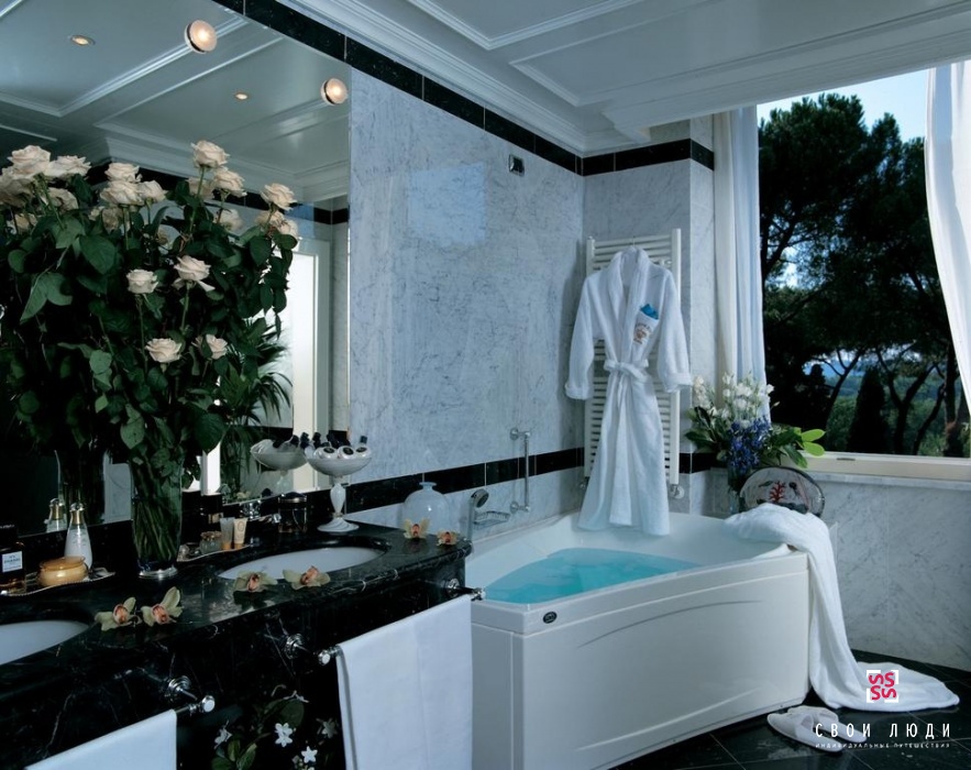 Для своих постоянных клиентов иногда отель выдвигает специальные предложения, одно из них – это бесплатный обед на троих в ресторане Mirabelle при проживании от 4 ночей в номере от категории Deluxe. Но даже и без этого бонуса в гостинице стоит остановиться подольше, чтобы на себе испытать всю роскошь и комфорт Рима.