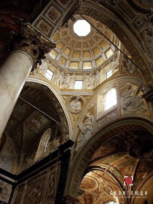 Обед в традиционной траттории в историческом центре. После обеда продолжение пешеходной прогулки с посещением основных церквей Генуи: церковь Иисуса- церковь построена между 1589 и 1606 годом и является одной из самых важных церквей Генуи. Верхняя часть была закончена в 1892 году на основе первоначального проекта Рубенса 1662 года. Собор св. Лоренцо – посвященный св. Лоренцо был построен в 5-6-ом веке, и в те времена использовался первыми христианами.