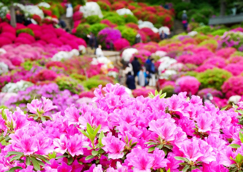 Посещение фестиваля азалий в храме Нэдзу. Этот храм считается одним из старейших не только в Токио, но и во всей Японии – элегантная и ярко-красная деревянная архитектура храма, а также тихие тропки среди богатой зелени и прудов с карпами отражают истинную красоту японского дизайна. С конца апреля в прихрамовом саду зацветают более 3000 кустов азалии самой разнообразной палитры.