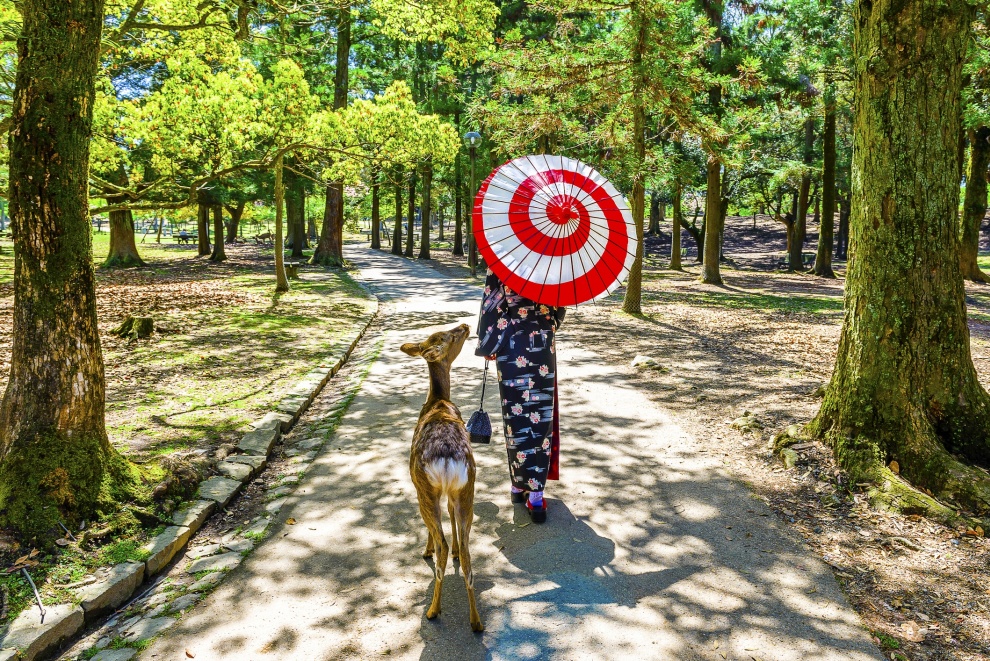 Прогулка по парку Нара – одному из старейших парков Японии. Парк буквально усеянный национальными сокровищами и объектами всемирного наследия, известен еще и как «парк оленей». В парке живут сотни ручных оленей – символов города, признанных природным сокровищем. Оленей можно покормить крекерами, которые продаются в специальных ларьках.