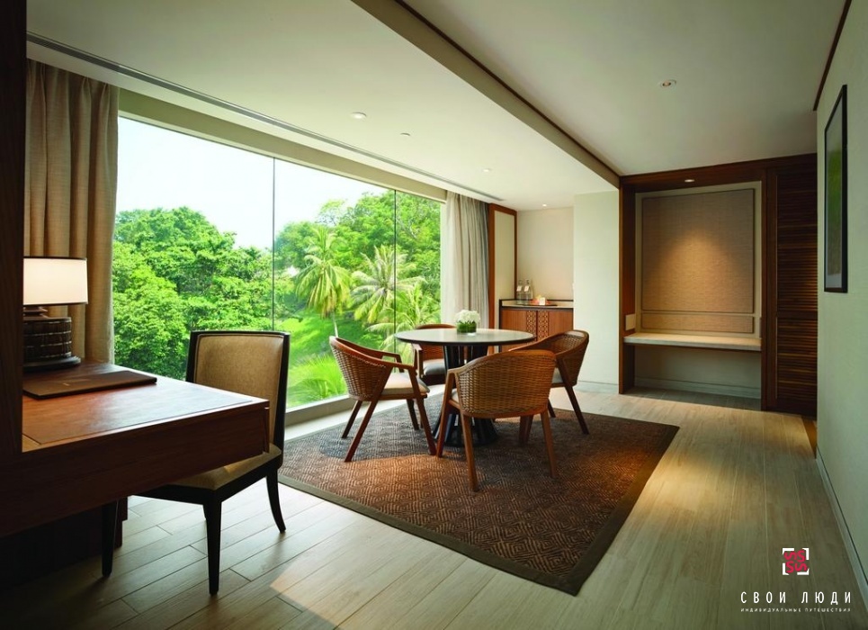 1 Penang Suite (105кв.м) – спальня и отдельная гостиная с обеденной зоной, с видом на океан и панорамным видом на сад и бассейн, дополнительно: DVD/VCD плеер;