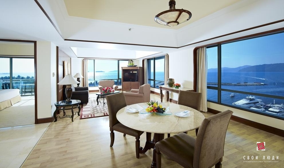 На двух самых верхних этажах располагаются клубные комнаты отеля. Здесь все отвечает желаниям и нуждам путешествующих бизнесменов, к услугам гостей этих этажей широкий спектр услуг, включая деловой центр, континентальный завтрак и вечерние коктейли в специальном зале, откуда открывается изумительная панорама тропических островков Южно-Китайского моря.