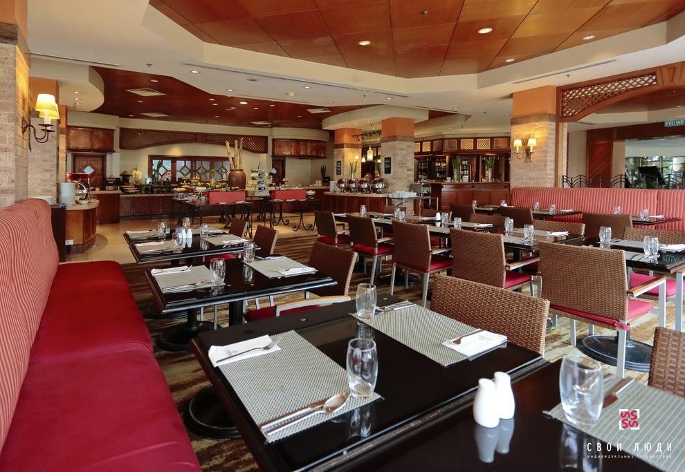 Бары и рестораны:ресторан Five Sails, стилизованный под пивной бар, ждет своих посетителей в течение всего дня. Endangered Species Cafй и бар Swim-up декорированы в экологическом стиле, интерьер посвящен богатейшей флоре и фауне Борнео. Здесь Вам предложат натуральные соки и «здоровую пищу». Beach Bar расположен у моря, там Вы сможете полюбоваться закатом и отведать тропические коктейли. Ресторан Spice Island предлагает утонченную кухню Юго-Восточной Азии, богатую пряностями и специями. Ресторан Ferdinand’s – итальянская кухня в элегантной обстановке.