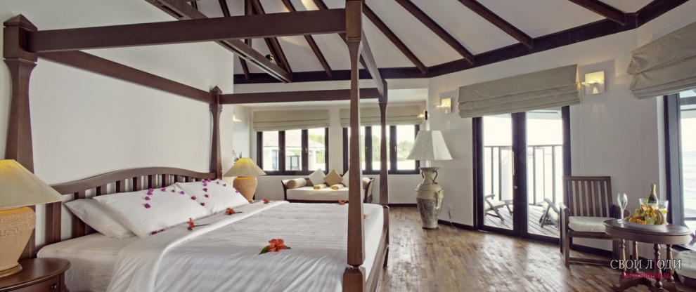 Виллы на воде: виллы площадью 150 кв.м с видом на океан и прямым выходом к океану расположены над прозрачными водами океана и состоят из спальни, гостиной, просторной ванной комнаты, террасы для загара и частного бассейна.