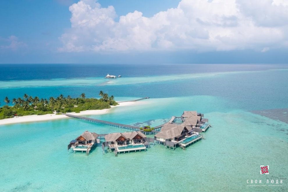 The Crescent 6BR Combined. Квинтет необычных вилл на частном острове Нияма, спрятанный в море, образует уединенное пространство над водой. Вблизи от всего интересного, но вдали от суеты, до 14 взрослых и 8 детей могут фантастически отдохнуть в окружении лазурного неба и бирюзового моря. Наслаждайтесь простором. Павильон с двумя спальнями и океаническим бассейном в самом сердце Полумесяца, в окружении двух павильонов с бассейном с одной спальней и двух роскошных вилл с бассейном над водой (все пять с частными бассейнами). Два преданных частных дворецких, частный повар и экономка обеспечат бесперебойную работу вашего островного оазиса.