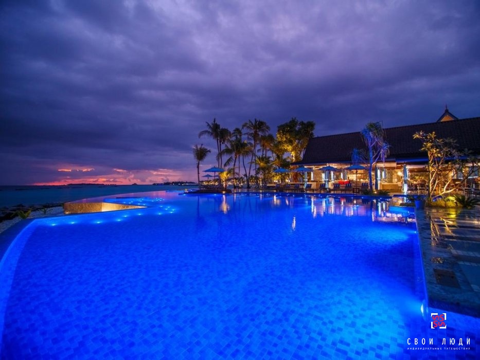 Для любителей сноркелинга трижды в день организуются поездки на ближайший риф (за дополнительную плату). Все необходимое оборудование предоставляет Центр водных видов спорта курортного комплекса. Но обитателей прибрежных вод можно увидеть и в шаговой доступности от номера: по ночам к освещенным мостикам приплывают скаты.