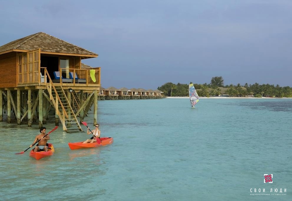 Курорт предлагает 2 вида трансфера из международного аэропорта Velana: 25-минутный перелет на гидросамолете или более экономичный - внутренний перелет на рейсе местных авиалиний до ближайшего к курорту аэропорта Maamigili с последующим трансфером на катере до отеля.