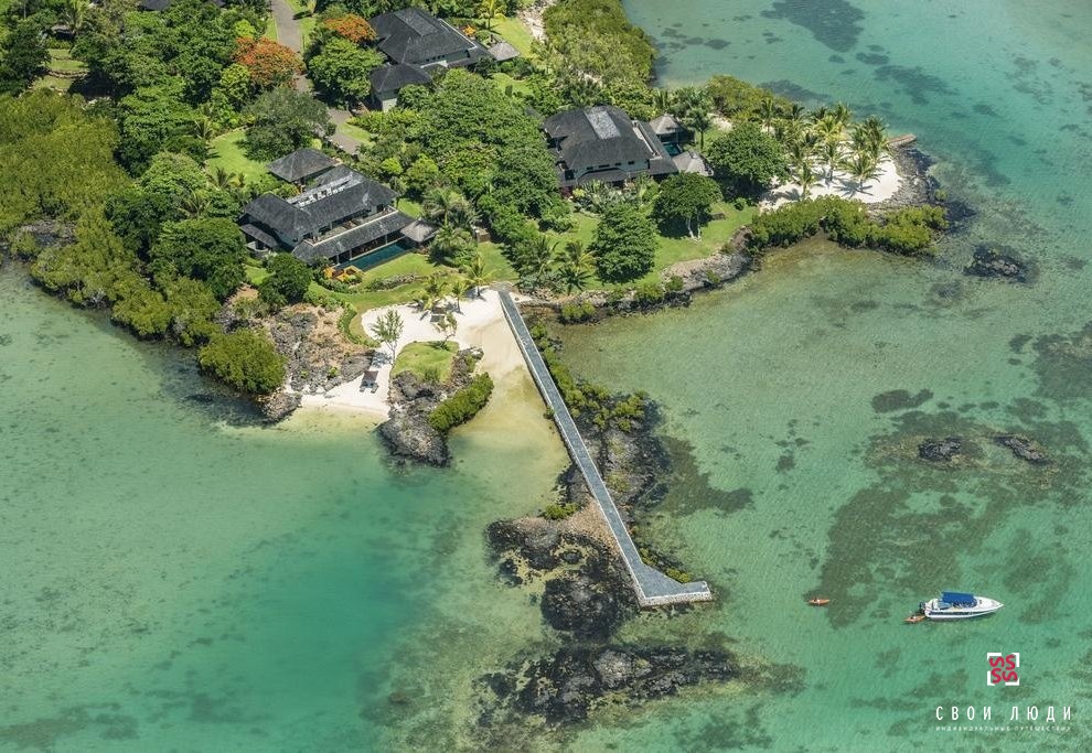 Комплекс занимает огромную территорию на побережье острова Маврикий и на рядом стоящем крошечном островке Ile Aux Chats, куда ведет два мостика. С этих мостиков можно наблюдать миллионные стаи рыб, резвящихся в неглубоком проливе! Пройдя по извилистой дорожке, мимо чудесных цветников и прячущихся в буйной зелени симпатичных вилл, оказываешься в уютнейшем приватном садике с видом на океан. Его дополняет приличных размеров бассейн и собственно "номер" - просторная вилла с огромной кроватью, с роскошной ванной комнатой и щедрых размеров верандой-гостиной.