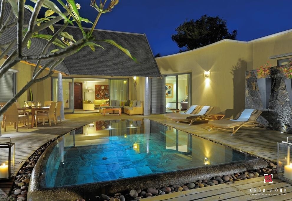 Отель расположен на северо-западном побережье острова, славящемся своими песчаными пляжами, и представляет собой комплекс невысоких двухэтажных зданий, крытых пальмовыми листьями и окруженных ухоженным тропическим садом. Номера декорированы в традиционном маврикийском и колониальном стилях с преобладанием теплых цветов.