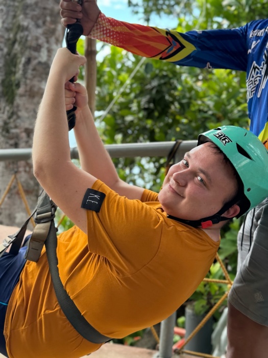 Ещё одним ярким моментом пребывания в районе Сабанга стал мой первый опыт зиплайна, который находится совсем рядом с Подземной пещерой. Он проходил прямо над джунглями и выходил к побережью, открывая потрясающий вид на океан. Сам полет недолгий, но эмоции были непередаваемыми: ветер в лицо, ощущение свободы и вид на бескрайние зелёные просторы с левой стороны, и океан с правой стороны.