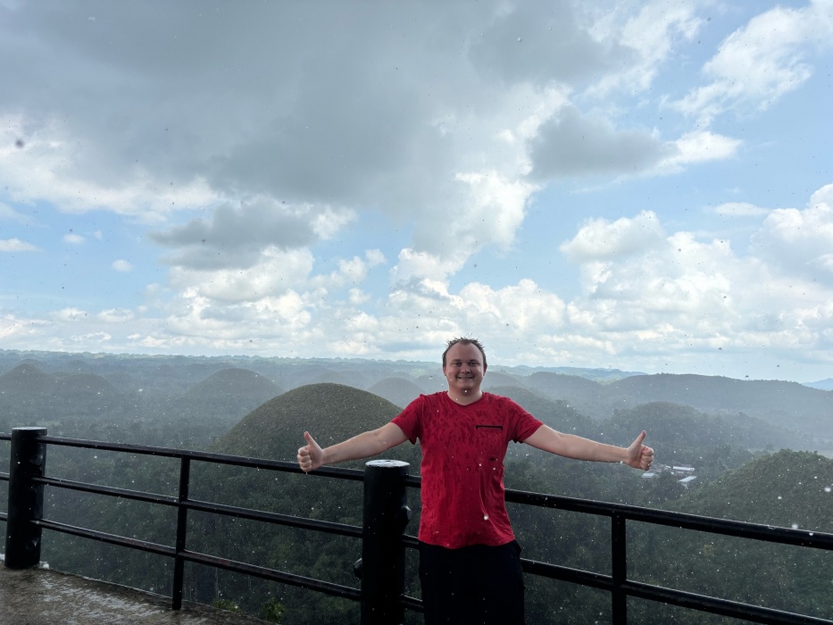 Знакомство с Бохолом я планировал закончить посещением знаменитых шоколадных холмов – уникального ландшафта, который состоит из более чем 1200 почти симметричных холмов. Эти холмы получили своё название из-за того, что в сухой сезон травяной покров на них выгорает, превращаясь в насыщенно коричневый цвет, напоминая гигантские шоколадные трюфели. Насладиться завораживающими видами удалось не в полной мере, так как начался сильный ливень и, спешно поднявшись на смотровую площадку, я сделал пару фотографий и быстрым шагом вернулся в свой транспорт.