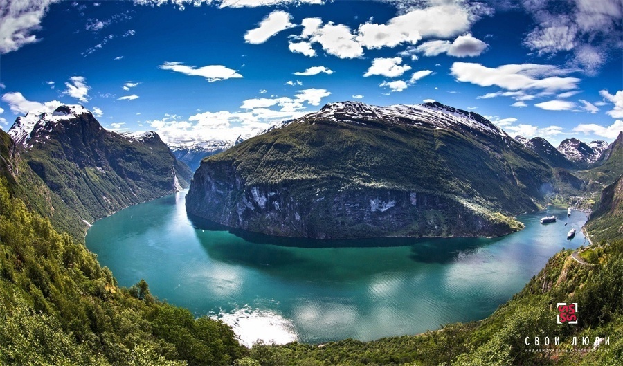 На автобусе вы отправитесь на смотровую площадку - Флидалсжевет, с которой было снято большинство панорам Гейрангера, в том числе и те, где люди стоят на отвесной скале с видом на деревню и фьорд.