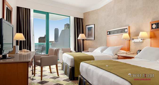 В отеле 389 комфортабельных номеров, и большинство из них – с красивым видом на Персидский залив. Гости могут выбрать самые разные варианты размещения, рассчитанные на любое количество человек, включая большую семью, а также на людей с ограниченными физическими возможностями. Все номера прекрасно оснащены, имеют большие окна, облицованные мрамором ванные комнаты, современное техническое оснащение и стильные интерьеры с легким восточным оттенком. На 9 этаже с собственной стойкой регистрации расположены номера Executive, гостям которых предоставляются дополнительные привилегии, включающие бесплатный завтрак, послеобеденный чай, напитки по вечерам и канапе.