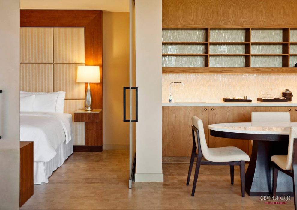 Westin Renewal Suite: замечательный люкс с панорамным видом на поле для гольфа, состоящий из спальни с фирменной двуспальной кроватью, отдельной гостиной со столовой зоной, ванной комнаты с ванной и душевой кабиной, балкона. Дополнительные удобства: док-станции для iPhone/iPod, счастливые часы с 18:00 до 20:00 с напитками и канапе. Максимальная вместимость – 3 человека. Площадь номера – 70 кв. м.