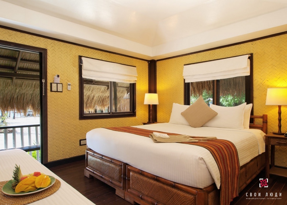 Все коттеджи имеют отдельную веранду и ванную комнату и оформлены в традиционном филиппинском островном стиле: отделка из дерева, бамбуковая и ротанговая мебель. В каждом номере отеля есть кондиционер, телефон, рабочий стол, сейф, Wi-Fi, мини-бар, фен, CD-проигрыватель. Отдыхающие могут также воспользоваться услугой доставки еды в номер.