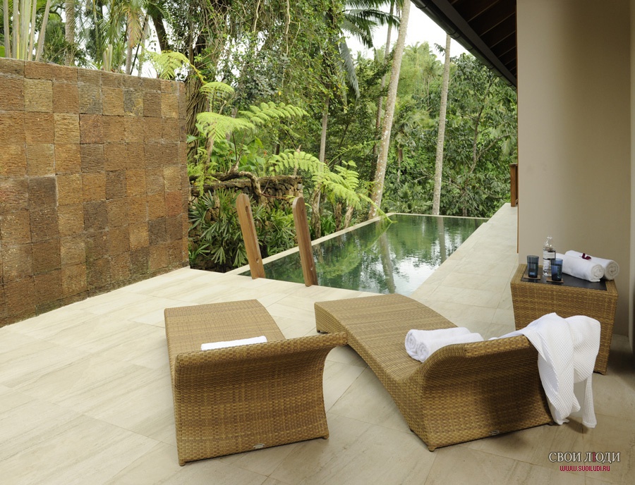 Garden Villa: вилла в саду, оформленная в стиле модерн, включающая спальню с кроватью king-size, веранду с обеденной зоной, ванную комнату открытого типа с душем и ванной, частный сад. Максимальная вместимость – 3 взрослых или 2 взрослых и 1 ребенок. Площадь виллы – 80 кв. м.