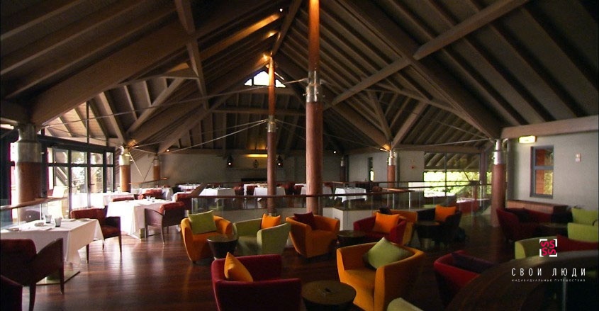 Смелые дизайнерские решения удачно воплотились в африканских и азиатских мотивах, прекрасно сочетающихся с чертами традиционного португальского стиля. Результатом работы стали 34 бунгало, выглядящие экзотически, но внутри вполне уютные. Каждое здание держится на прочных колоннах из дерева, прочно вмурованных в пологие скалистые берега бухты Фуншала. Со стороны суши отель Choupana Hills Resort 5* окружен пышными субтропическими садами.