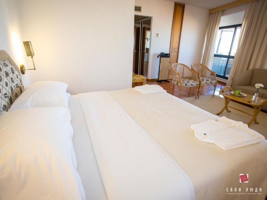 34 полулюкса (просторный номер со спальней и гостиным уголком, мини-баром, сейфом, телефоном, радио, телевидением, видео, кондиционером, большим балконом с видом на океан или на бассейн и сад),