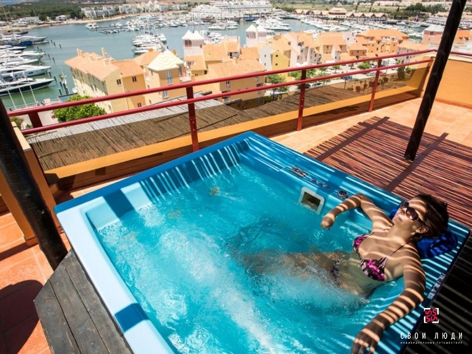 В центре Виламоры, Алгарве, между яхт-бухтой и пляжем (200 м), оригинальная архитектура пирамиды, своя территория с пляжем.