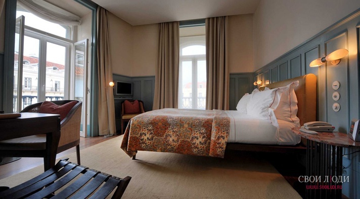 Delux Room (25 - 27 м²): эти комнаты являются угловыми. Они очень просторны и красиво обставлены. Delux Rooms рассчитаны на пребывание двух посетителей. Они имеют большую спальню, гардеробную и ванную комнаты. Таких номеров в отеле четыре, из их окон открывается замечательный вид на оживленную площадь Луиса де Камоэнса, тихую Флорес-стрит и реку Тежу.
