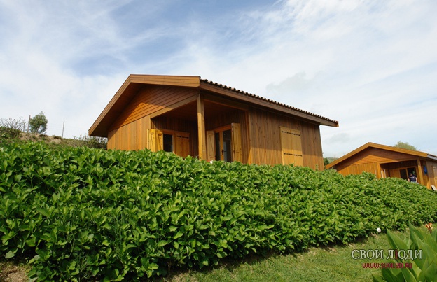 5 уютных сосновых коттеджей, обшитых изнутри светлым деревом, с хорошей термо- и звукоизоляцией и всем необходимым для комфортного отдыха. Есть смежные домики с сообщающейся дверью для больших семей или компаний. Каждый дом состоит из спальни с видом на сад, гостиной с раскладным диваном и телевизором, ванной комнатой с ванной, туалетом и биде, оборудованной кухни с микроволновой печью и холодильником.
