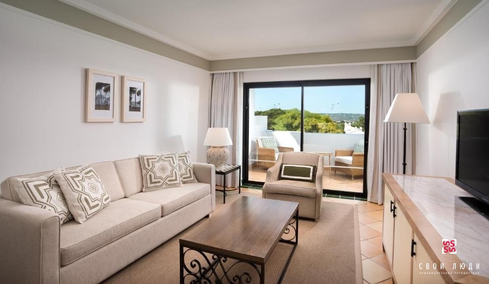 Апартаменты Т1 – номер с одной спальней, имеющий вместимость до 4 человек с площадью 80 кв. м. Они располагаются на 3-м этаже, имеют террасу и площадку для барбекю. Из гостиной – выход на террасу. Также здесь есть оборудованная кухня. Современный отель Sheraton Pine Cliffs Vacation Club 5* предлагает гостям самостоятельно готовить для себя, чем с удовольствием пользуются семьи с детьми.