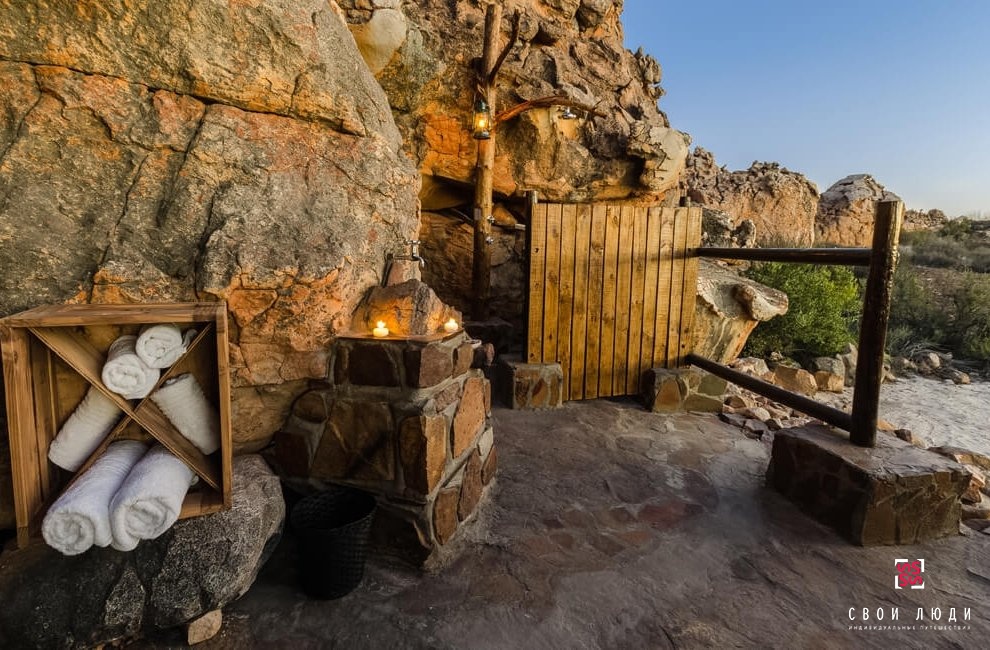 Концепция отеля Bushman Lodge at Kagga Kamma 4* вдохновлена маленьким городком Бедрок, где жили персонажи из знаменитого мультфильма – пещерные люди Флинстоуны. Сами номера выглядят как пещеры в природных углублениях породы, но это только снаружи. Внутри вас ждет приятная прохлада, комфортная обстановка и все, что необходимо для полноценного отдыха.