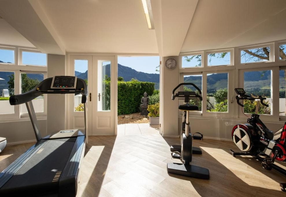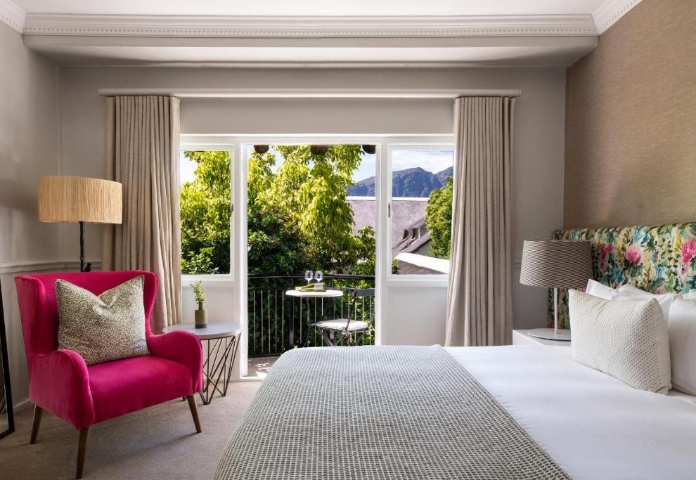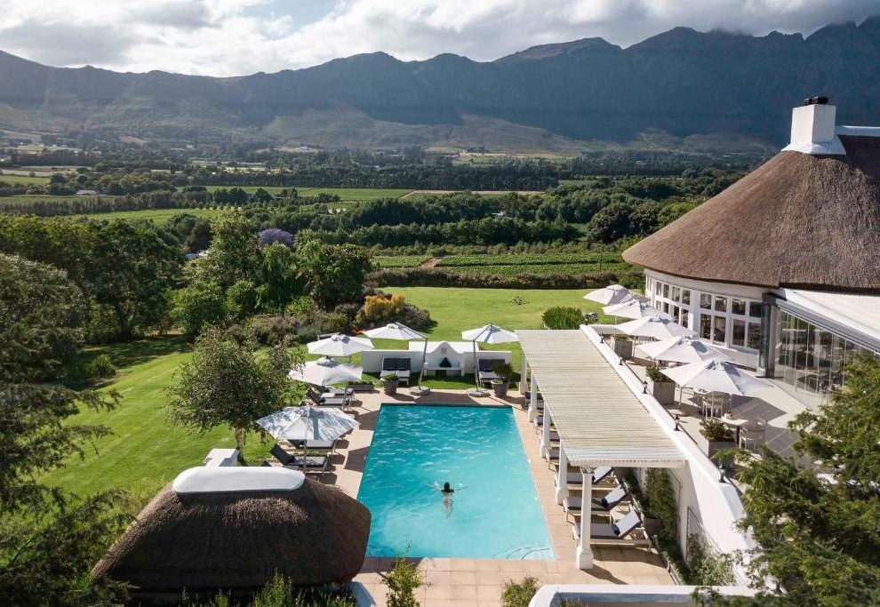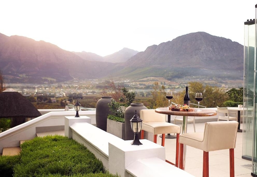 Отель расположен на территории 39-гектарного виноградника, на возвышенности с видами на окружающие горы и ухоженные ряды лоз. Интерьеры Mont Rochelle — это сочетание современной простоты и капской классики: тёплые тона, натуральные материалы, панорамные окна и акценты винной тематики. Здесь всё создано для спокойного, размеренного отдыха: прогулки по виноградникам, дегустации, обеды на террасе, спа и бассейн с видом на долину.