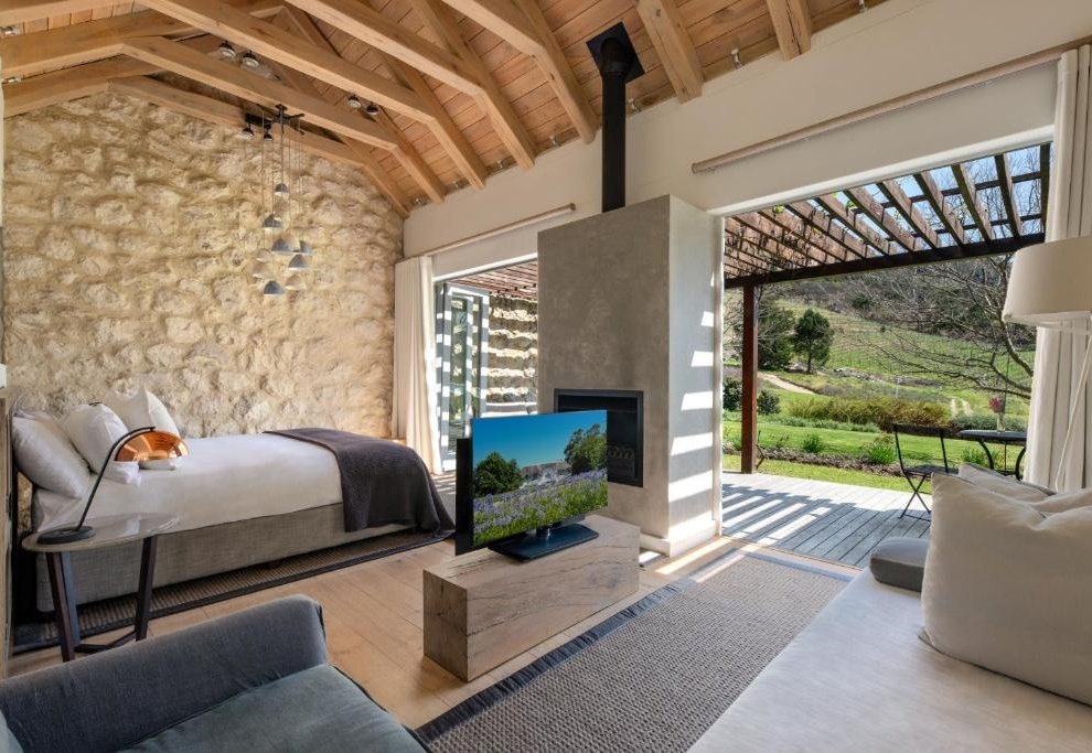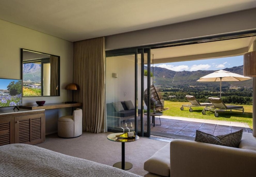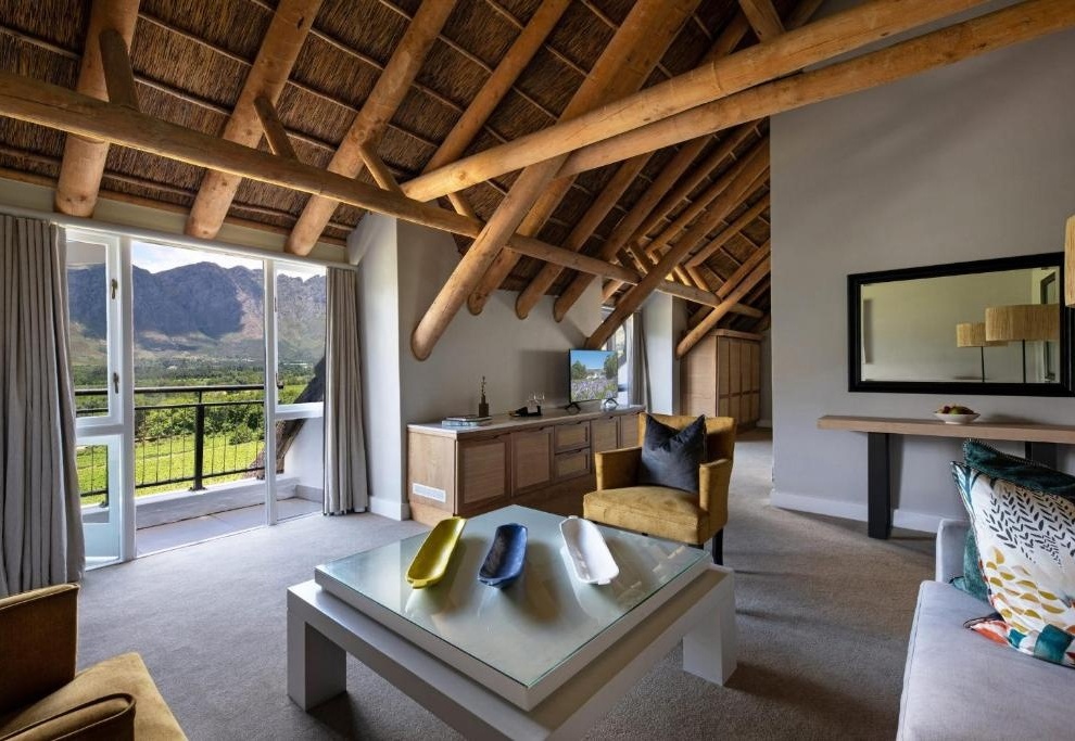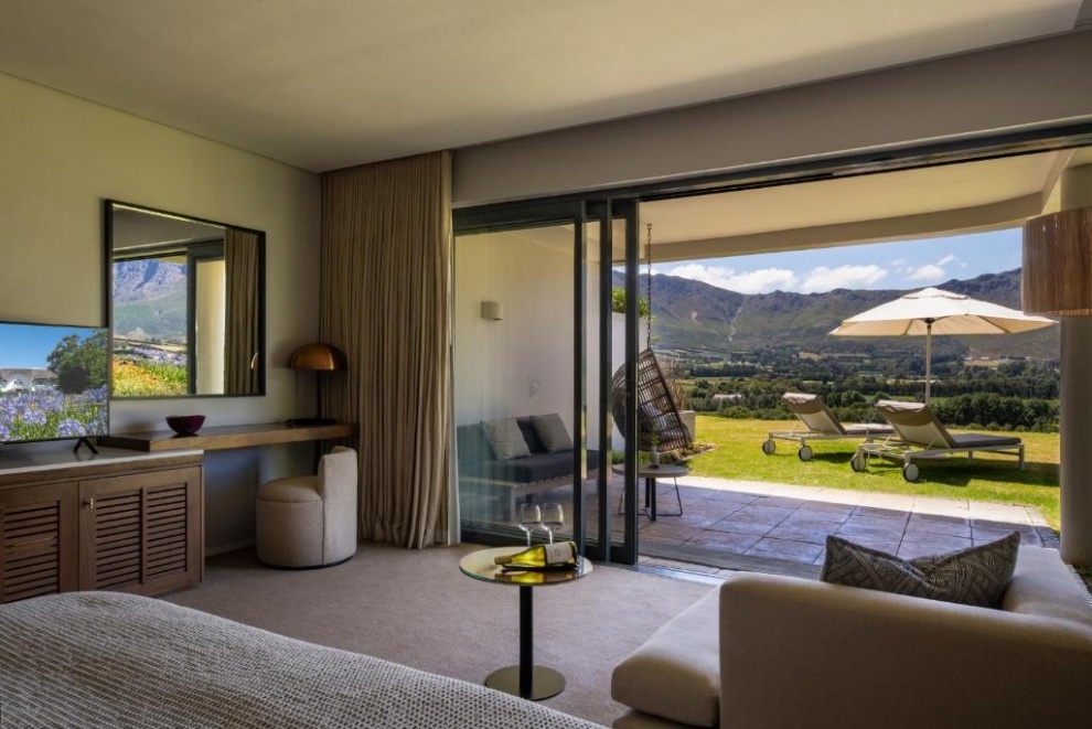 Cap Classique Suites: роскошные сьюты с отдельной гостиной, камином, огромными ванными комнатами и частными террасами с видами на виноградники.
