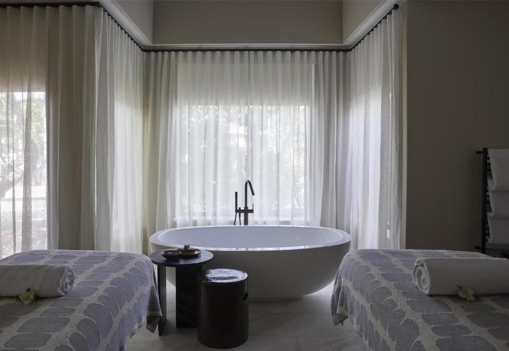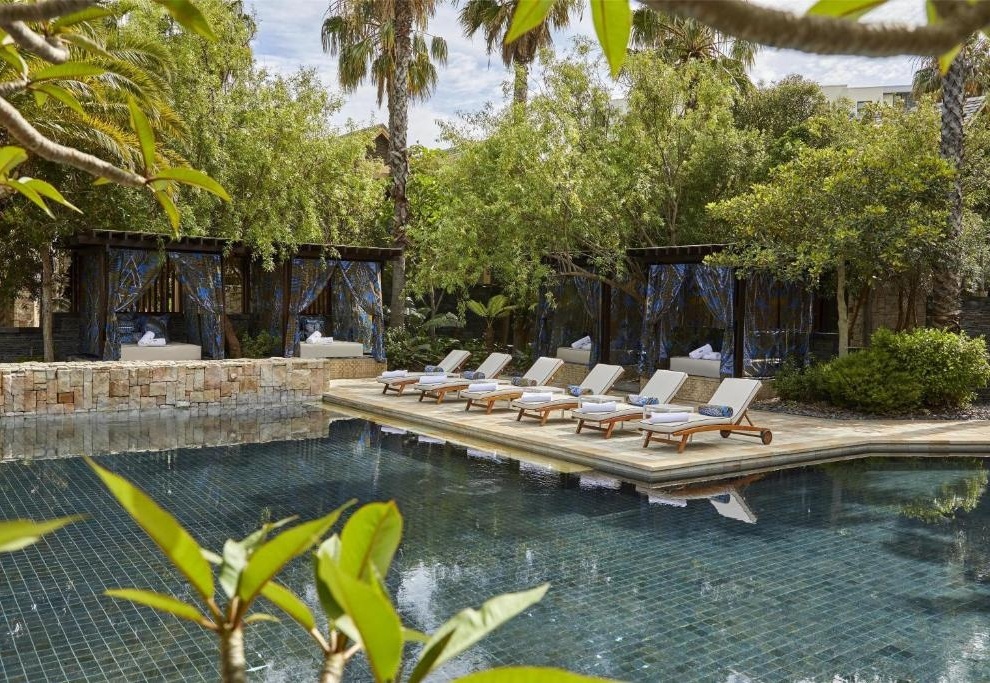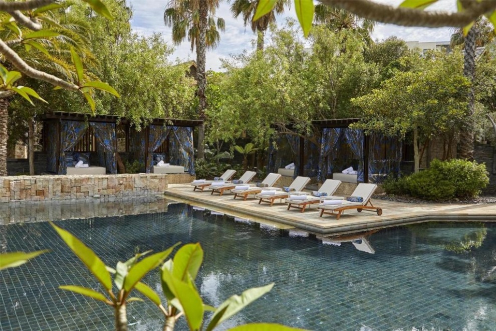 Отель занимает обширную территорию с собственными каналами, роскошными садами, бассейнами и уединёнными островными резиденциями. Интерьеры сочетают африканские акценты, натуральные материалы и современный элегантный стиль. Пространство продумано так, чтобы гости чувствовали себя в оазисе посреди города: тихо, приватно, зелено и изысканно. Особое внимание уделено персональному сервису — от консьержей до дворецких в отдельных категориях номеров.