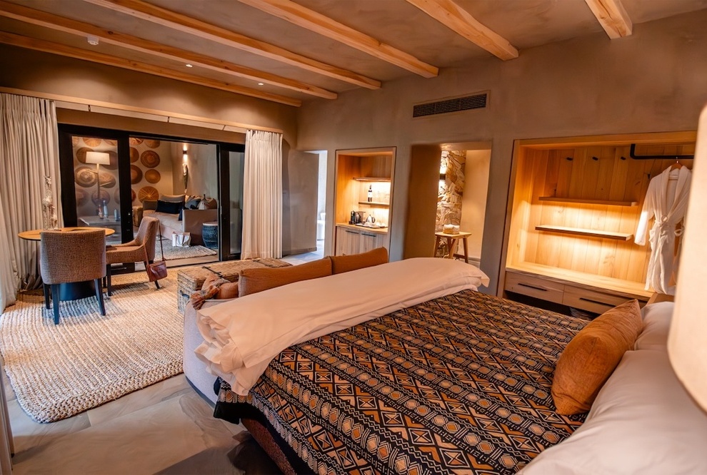 Tamboti/Marula Suites: просторные супер-сьюты с панорамными окнами и отдельной зоной отдыха, обеспечивающие максимальный комфорт после сафари.