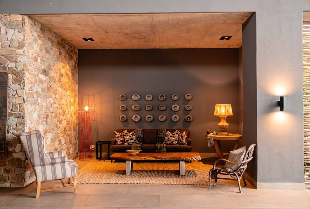 Лодж занимает просторную территорию с видом на реку и равнины саванны. Интерьеры Kapama River Lodge оформлены в стиле африканской роскоши: натуральные материалы, тёплые тона, этнические акценты и комфортные зоны отдыха. Здесь гармонично сочетаются приватность, простор и ощущение погружения в дикую природу. Лодж предлагает как спокойное уединение, так и возможность активного сафари с опытными рейнджерами.