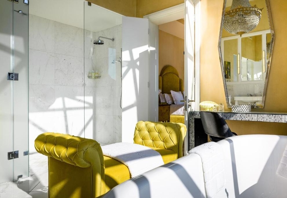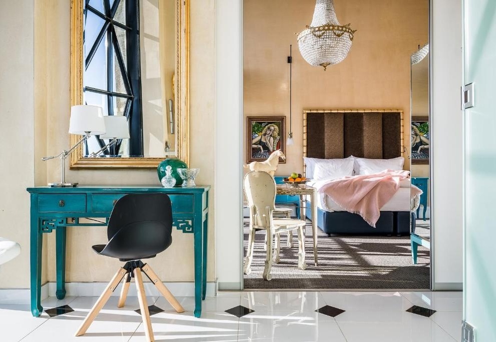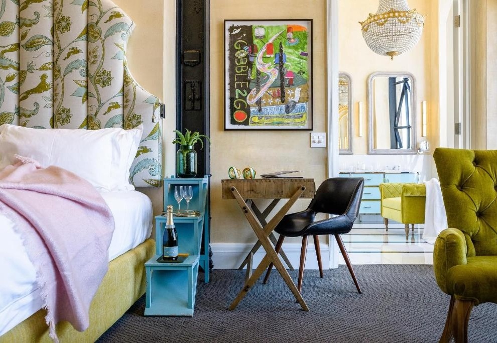 В отеле всего 28 номеров, и каждый оформлен индивидуально — с коллекционными арт-объектами, глубокими текстурами и эффектными цветовыми акцентами: