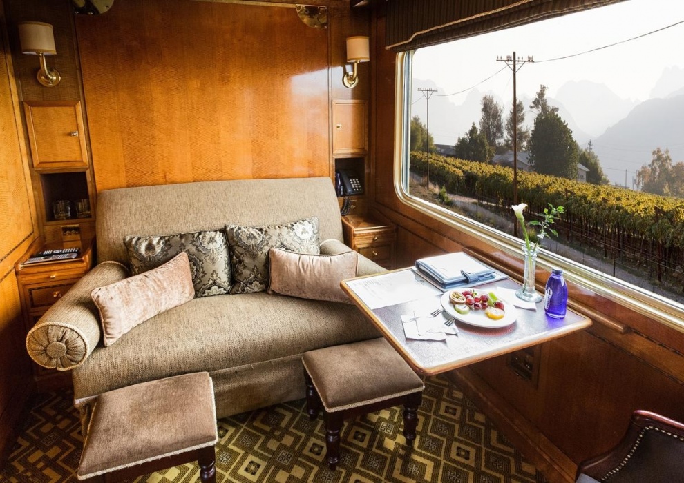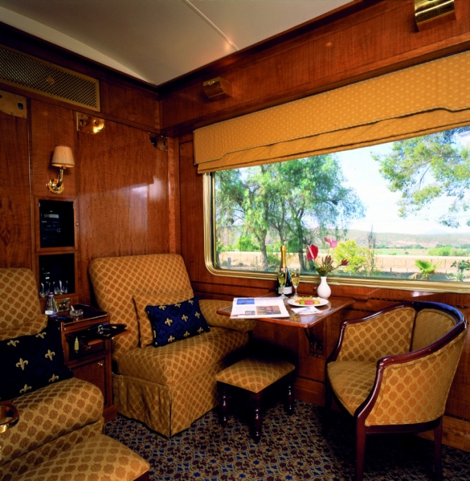 Интерьеры выполнены в классическом стиле с использованием дерева, кожи, латунных элементов и панорамных окон, позволяющих наслаждаться пейзажами Южной Африки в полном комфорте.