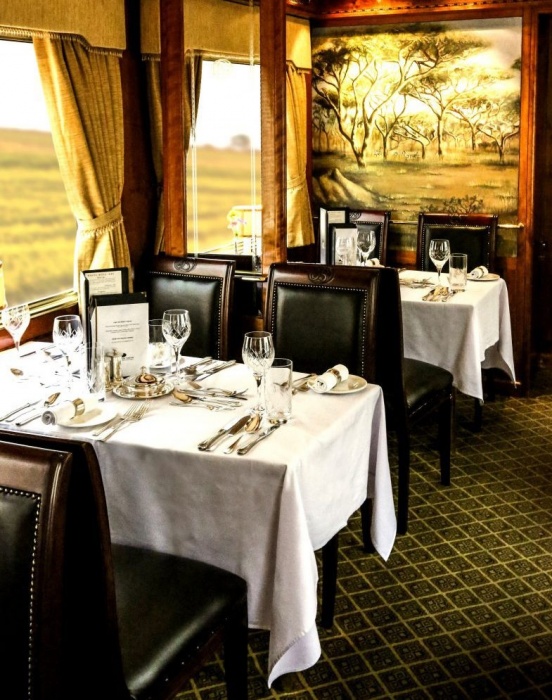 На борту подаются блюда высокой кухни, приготовленные из свежих локальных ингредиентов, в сопровождении лучших южноафриканских вин.