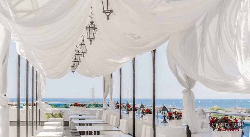 Аквамарин – это не просто отель в Крыму, это целый современный курортный комплекс, инфраструктура которого отвечает требованиям самых взыскательных клиентов. Среди них нередко оказываются VIP-гости, не нуждающиеся в представлении – знаменитые политики, актеры, певцы. Ухоженная территория гостиницы площадью в 2 гектара находится на первой линии у моря, среди пышной зелени хвойно-лиственных парков. Отсюда открываются головокружительные морские пейзажи на севастопольские бухты.