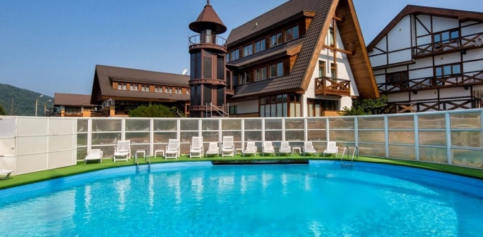 Открытый бассейн работает с июня по сентябрь. Диаметр бассейна – 18 метров, глубина 1,7 метров. Он наполнен байкальской водой, подогретой до 22-24 градусов и защищен от ветра.