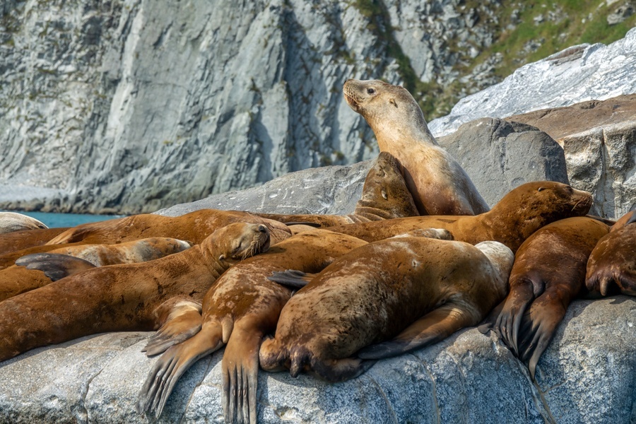 Северный морской лев Стеллера (или просто сивуч) – крупнейший представитель семейства ушастых тюленей, его размер достигает 3,5 метров, а вес доходит до тонны. Плавать с ними в маске и ластах - одно из самых забавных занятий на свете.