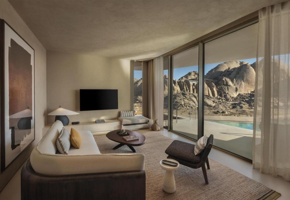 Спокойная атмосфера, слияние с природой, внимание к деталям: комнаты с видом на скалы, большие окна, натуральные материалы — всё это создаёт ощущение уединения и глубокой релаксации.