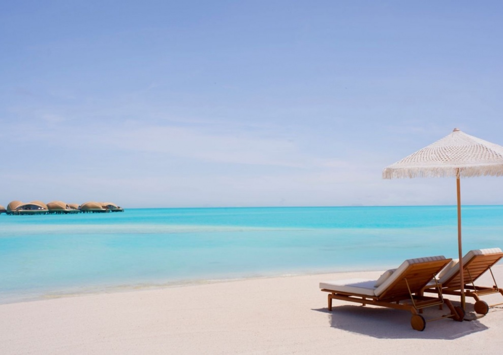 Water Villa 1-Bedroom - 151 м2. Терраса с открытым персональным бассейном, гостиная, мини-кухня, спальня с кроватью king-size, ванная комната с ванной и душем. Кондиционер, спутниковое телевидение, телефон, Wi-Fi доступ в интернет, утюг и гладильная доска, оборудование для приготовления чая и кофе, холодильник, плита, посудомоечная машина, сейф, фен, халаты, тапочки, телескоп. Расположены на сваях над водой. Вид на море. Варианты размещения: 2 человека.