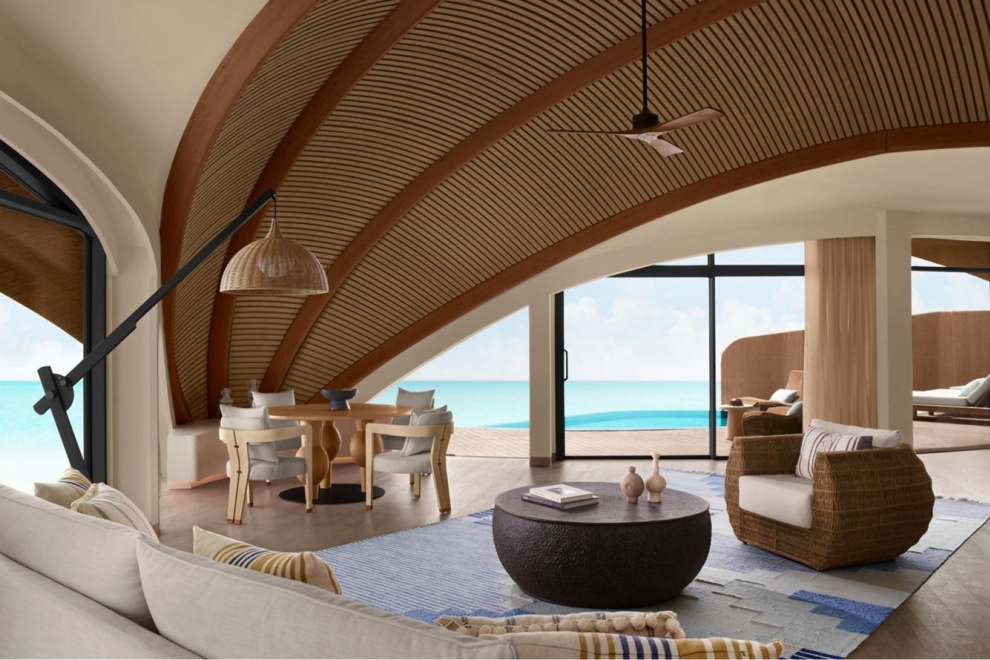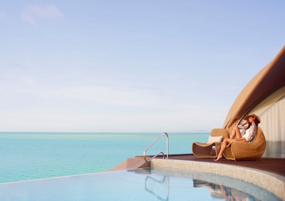 Reserve Water Villa Sea View 2-Bedroom - 229 м2. Терраса с открытым персональным бассейном, гостиная с обеденной зоной, мини-кухня, 2 спальни (одна - с кроватью king-size, вторая - с двумя кроватями queen-size), 2 ванные комнаты. Кондиционер, спутниковое телевидение, телефон, Wi-Fi доступ в интернет, утюг и гладильная доска, оборудование для приготовления чая и кофе, холодильник, плита, посудомоечная машина, сейф, фен, халаты, тапочки, телескоп. Расположены на сваях над водой. Вид на море. Варианты размещения: 4 человека.