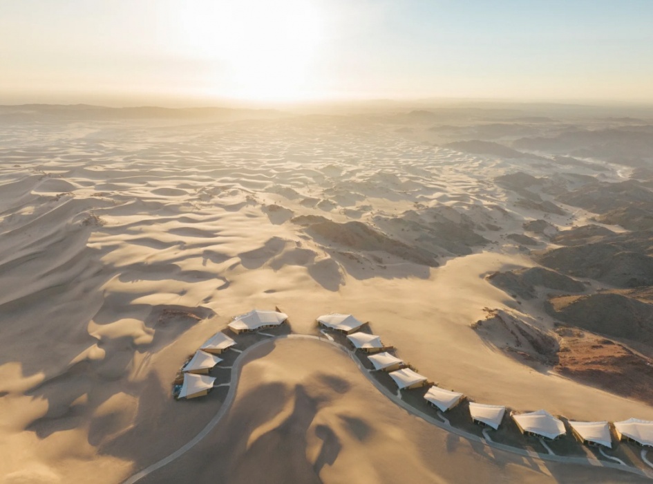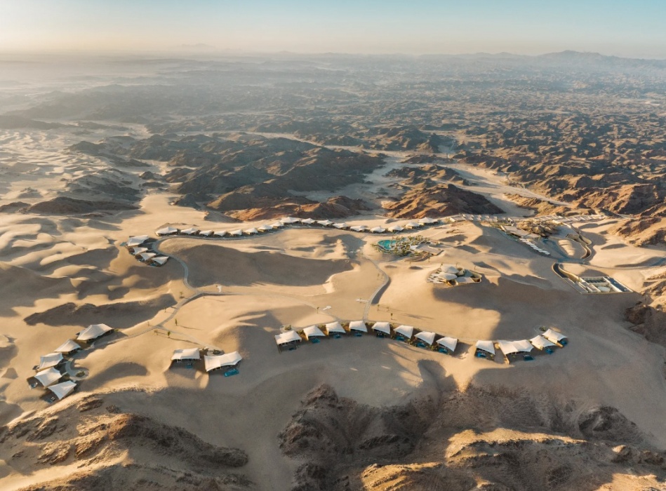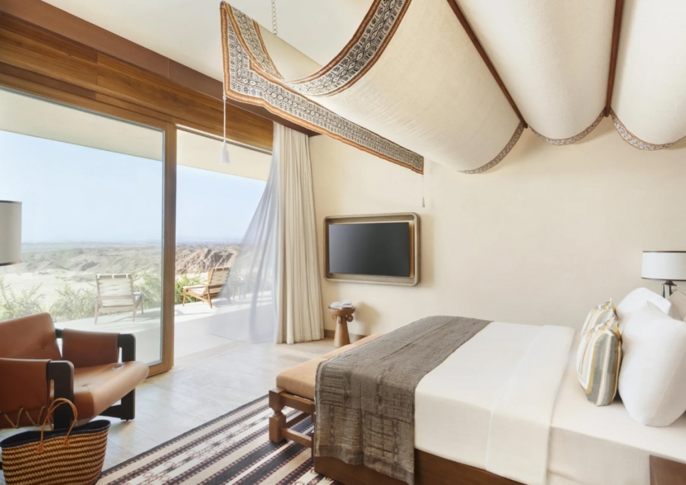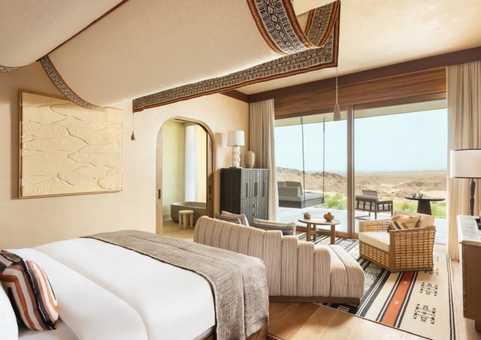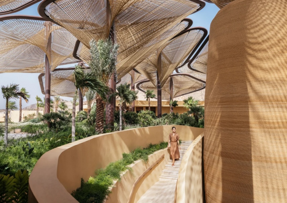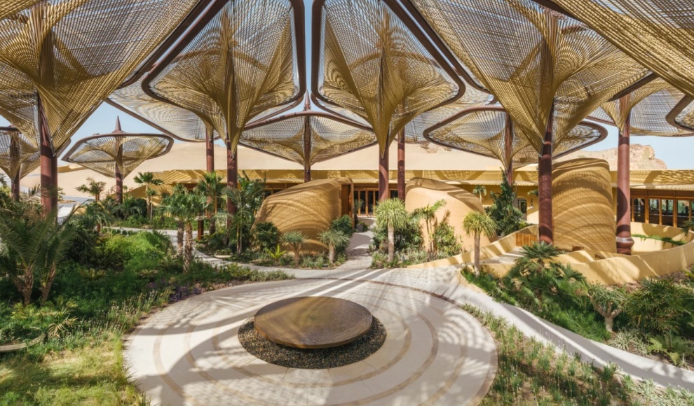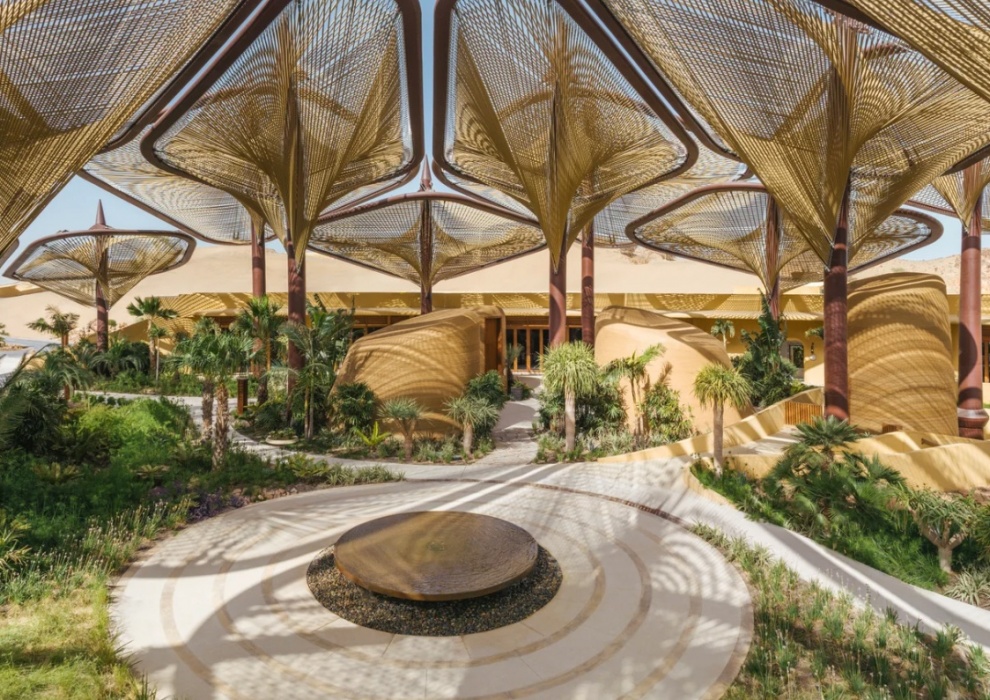 Спа-комплекс площадью около 3 974 м² создан с вдохновением от пустынных дюн региона: мягкие песочные оттенки, «медовые соты» архитектуры отражают ландшафт.
