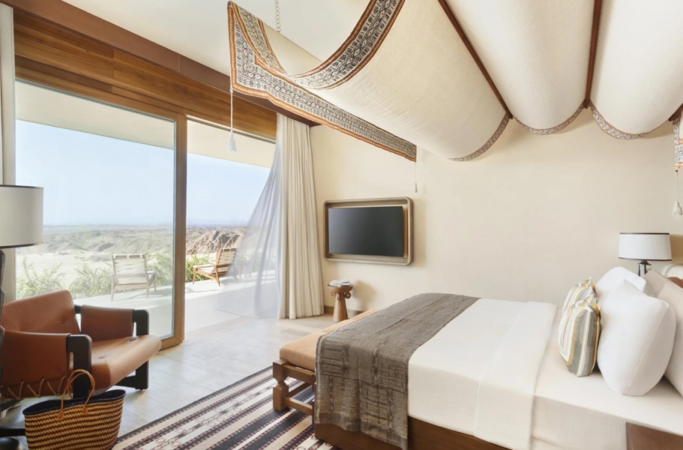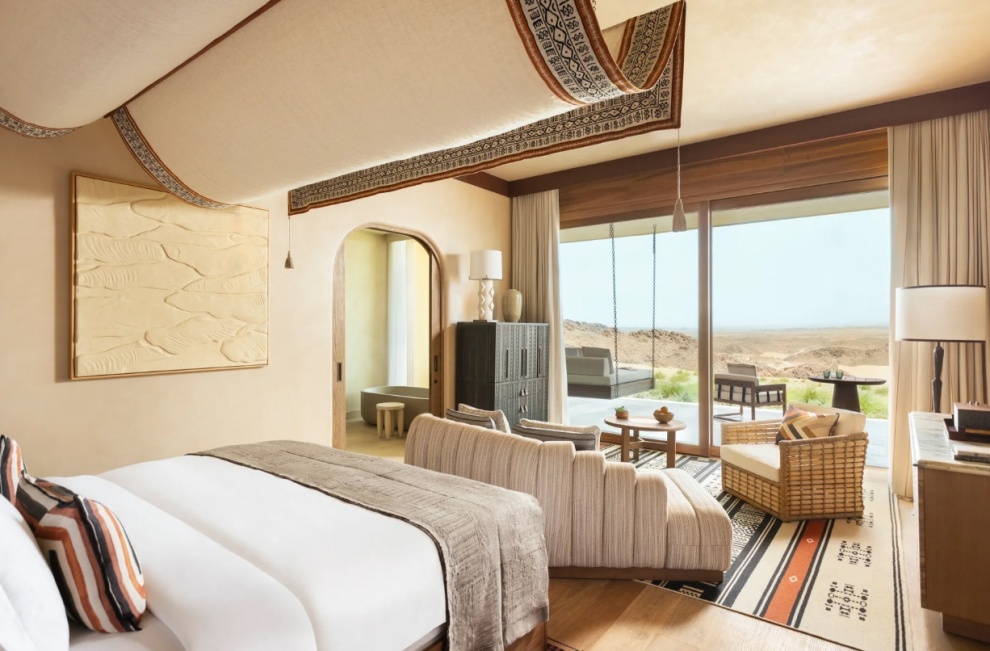 Wadi Suite - 90 м2. Балкон или терраса, гостиная с обеденной зоной, спальня с кроватью king-size, гардеробная, ванная комната с ванной и душевой кабиной, гостевой туалет. Вид на долину. Кондиционер, спутниковое телевидение, Wi-Fi доступ в интернет, мини-бар, сейф, фен, халаты. Варианты размещения: 2 человека.