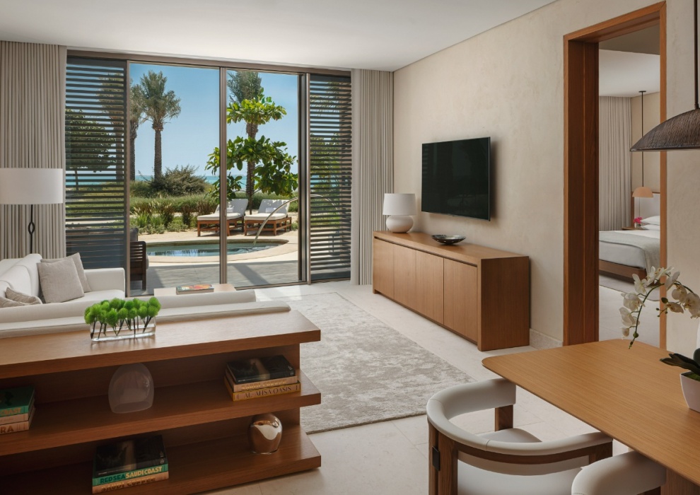 Coral Suite 2-Bedroom - 312 м2. Открытый персональный бассейн, терраса, гостиная с обеденной зоной, кухня, 2 спальни (каждая - с кроватью king-size), 2 ванные комнаты (каждая - с ванной и душем), гостевой туалет. Вид на море. Кондиционер, телевизор, мини-бар, оборудование для приготовления чая и кофе, Wi-Fi доступ в интернет, сейф, фен, халаты, тапочки. Варианты размещения: 4 человека.