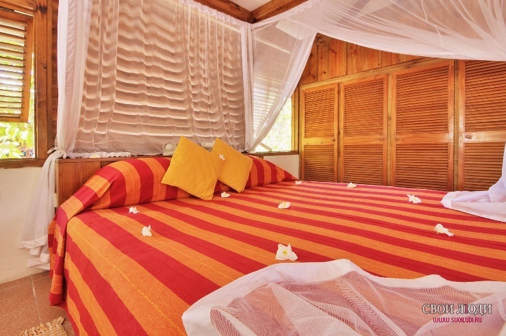24 индивидуальных бунгало, в которых: душ, потолочный вентилятор, полог, защищающий от комаров, сейф.