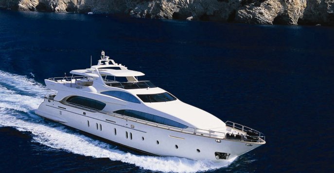 Превосходная моторная яхта с уникальным итальянским дизайном, созданная специально для любителей элегантности и роскоши. Отличительная особенность судна – неповторимые линии силуэта и полностью откидывающийся верх. Внутренний интерьер салона включает белые кожаные диваны, стильный круглый стол для ужина и место для развлечений. Лодка имеет три спальни: основную с двойной кроватью, VIP-кабину с двуспальной кроватью и каюту с двумя односпальными кроватями. К каждой комнате примыкает ванная. Яхту обслуживает опытная команда во главе с капитаном, а также батлер.