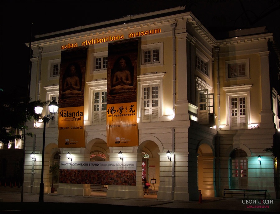 В музее Азиатских цивилизаций вас ждут экспозиции на темы «Река Сингапура», «Западная Азия», «Китай», «Южная Азия», «Юго-восточные страны Азии». Красивое старинное здание было пожертвовано правительством Сингапура в 2003 году и сегодня в коллекции Азиатского музея насчитывается более полутора тысяч различных ценных для науки и культуры артефактов. Ввиду того, что Сингапуру свойственна высокая степень космополитизма – здесь проживает множество различных этнических групп – музей Азиатских цивилизаций отлично демонстрирует все их многообразие и колорит.