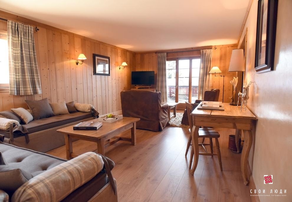 Также в отеле имеются прекрасные апартаменты L'Orchis Vanille, в которых могут расположиться две семьи с детьми. Главное достоинство апартаментов (кроме количества комнат) – будоражащий воображение вид на горы и альпийские долины. Здесь есть кухня, гостиная, столовая со всем необходимым, просторные спальни, несколько ванных комнат, гардеробные. Так как обычно апартаменты, которые предлагает отель Chalet d'Adrien 5*, бронируют семьи, в них имеются кроватки для детей.