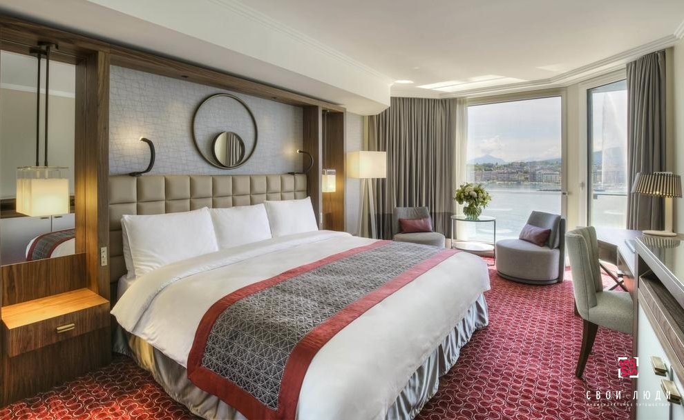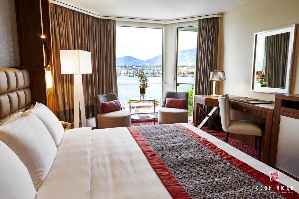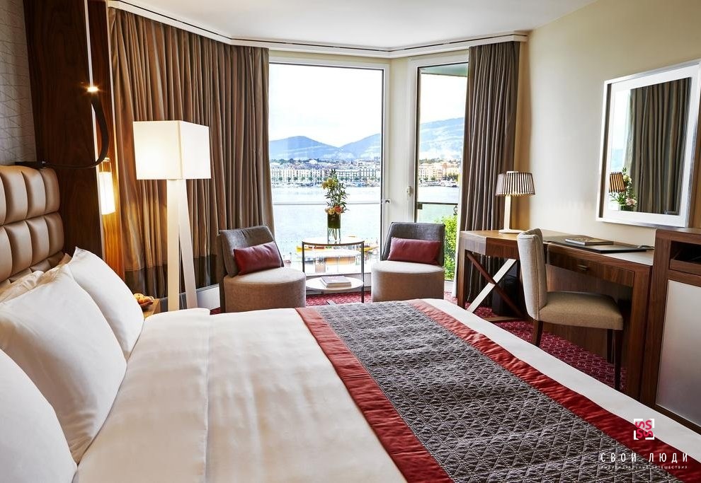 Geneva Suite: шикарный номер площадью 1080 кв. м. является самым большим сьютом в Европе. Люкс состоит из полностью оборудованной кухни, гостиной, столовой, ванной комнаты с джакузи, лаунж-зоны, террасы и развлекательной зоны. Окна номера выходят на Женевское озеро.